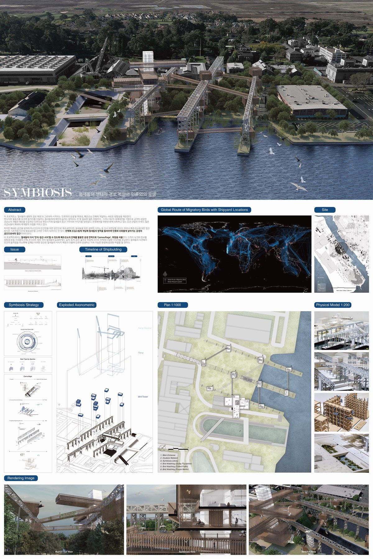 이 프로젝트는 ‘철새들의 생태적 경로 복원’과 그로부터 시작되는 ‘인류와의 공생’을 목표로, 폐조선소 잔해에 개입하는 새로운 방향성을 제안한다.