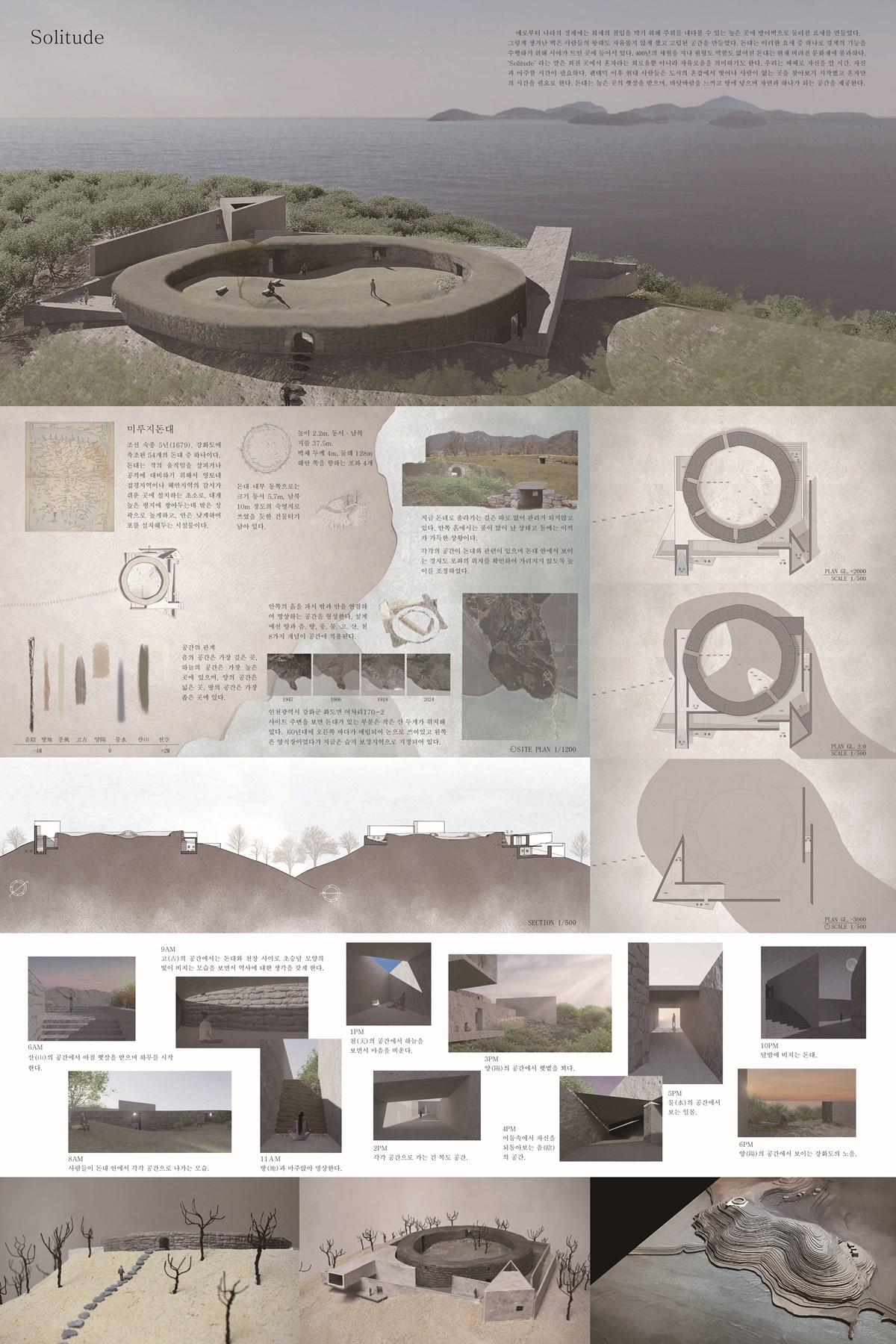 'Solitude' 라는 말은 외진 곳에서 혼자라는 외로움뿐 아니라 자유로움을 의미하기도 한다. 우리는 때때로 자신을 알 시간, 자신과 마주할 시간이 필요하다. 팬데믹 이후 현대 사람들은 도시의 혼잡에서 벗어나 사람이 없는 곳을 찾아보기 시작했고 혼자만의 시간을 필요로 한다. 고대로부터 종교에서는 사막, 동굴, 절벽 등 외딴곳에 수도원을 두어 세속의 향락과 멀리하면서 수행하도록 했다. 돈대는 높은 곳의 햇살을 받으며, 바닷바람을 느끼고 땅에 닿으며 자연과 하나가 되는 공간을 제공한다.