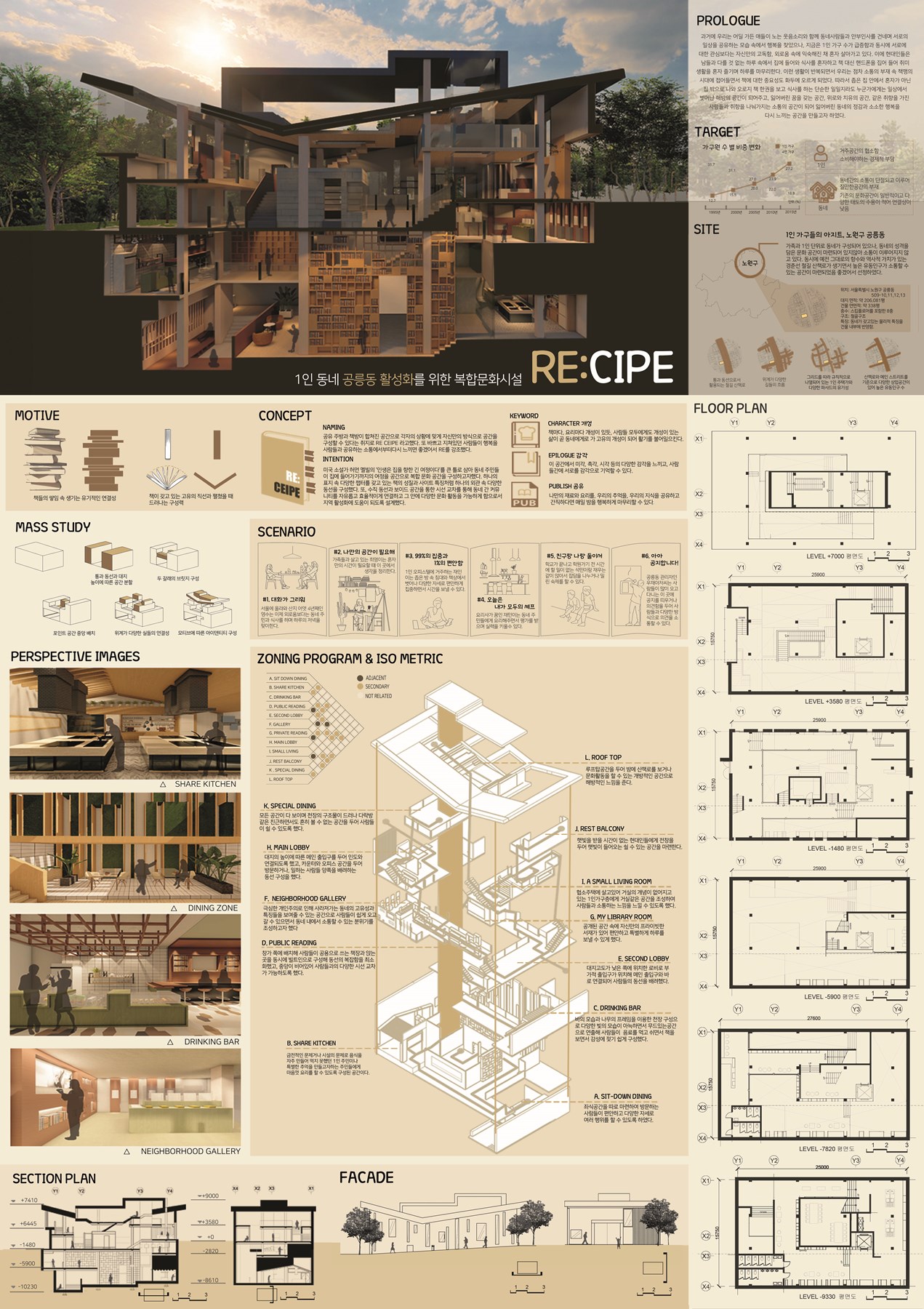 공간의 동선과 배치를 미국 소설가 허먼 멜빌의 ‘인생은 집을 향한 긴 여정이다.’을 그 스토리라인으로 설정하여, 일터에서 집에 들어가기까지의 여정을 공간으로 복합 문화 공간을 구성하여, 진입의 시작을 건물의 중앙층에서 시작하여 지하 방향동선과 지상동선을 유기적으로 구성하였고, 사람의 심리적, 사회적 성향을 고려한 공간 제안이 매우 우수한 작품입니다.