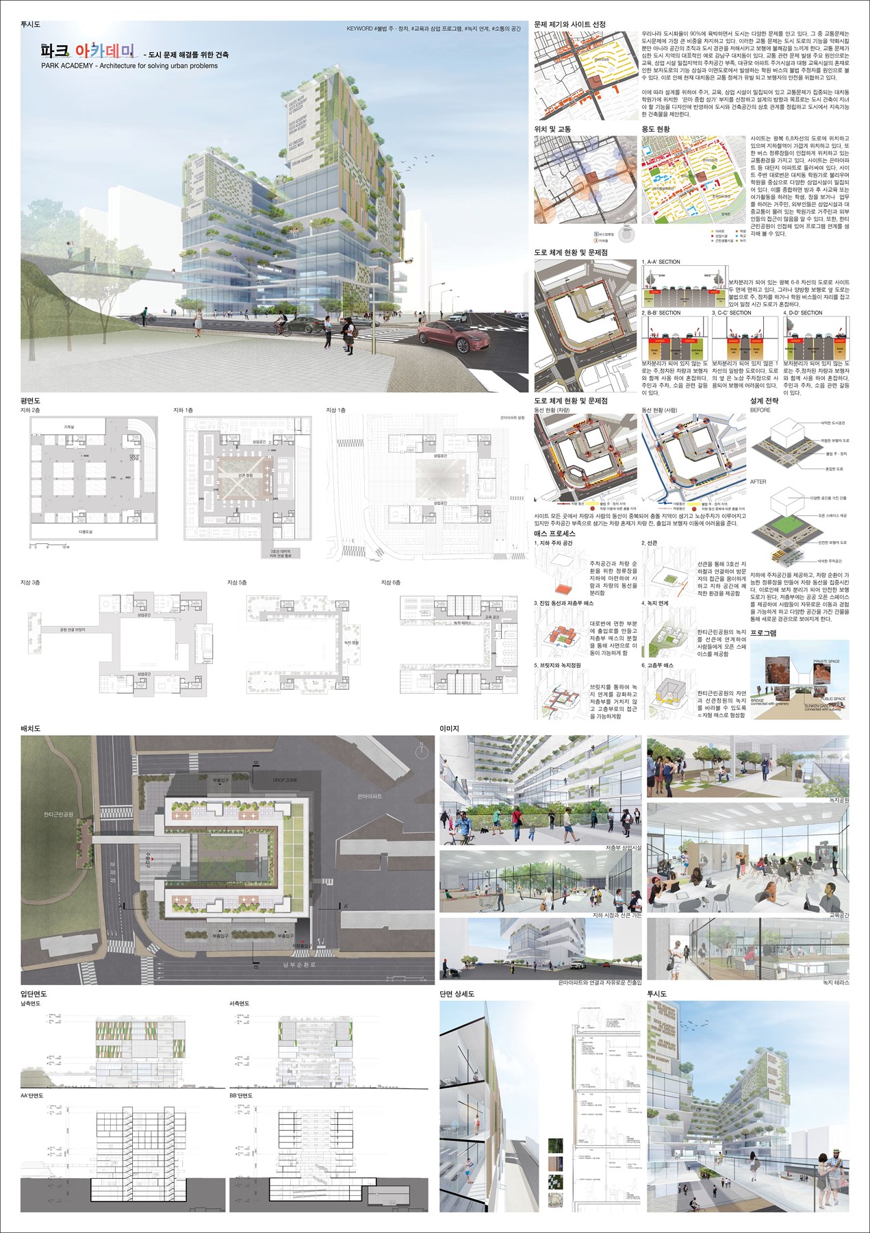 본 프로젝트는 강남구 대치동 내에 사이트를 선정하여 프로그램, 도로체계와 교통관련 동선을 분석하여 도출해낸 문제점을 건축 공간을 통해 해결하였다. 또한 사이트가 가지고 있는 지리적 장점을 활용하여 차량과 보행자 동선의 기능을 강화하였고 동선 안에서 주변 프로그램 연계하여 건물의 활용도를 높이고자 하였다. 그리하여, 파크 아카데미는 명확한 동선체계와 접근성 그리고 도시의 부족한 그린, 주차 인프라 확보 전략을 통해 도시 프로그램과 융합되며, 이는 도시건축물로써 도시와 상호관계를 위한 하나의 디자인 방향으로 제시될 수 있을 것이다.
