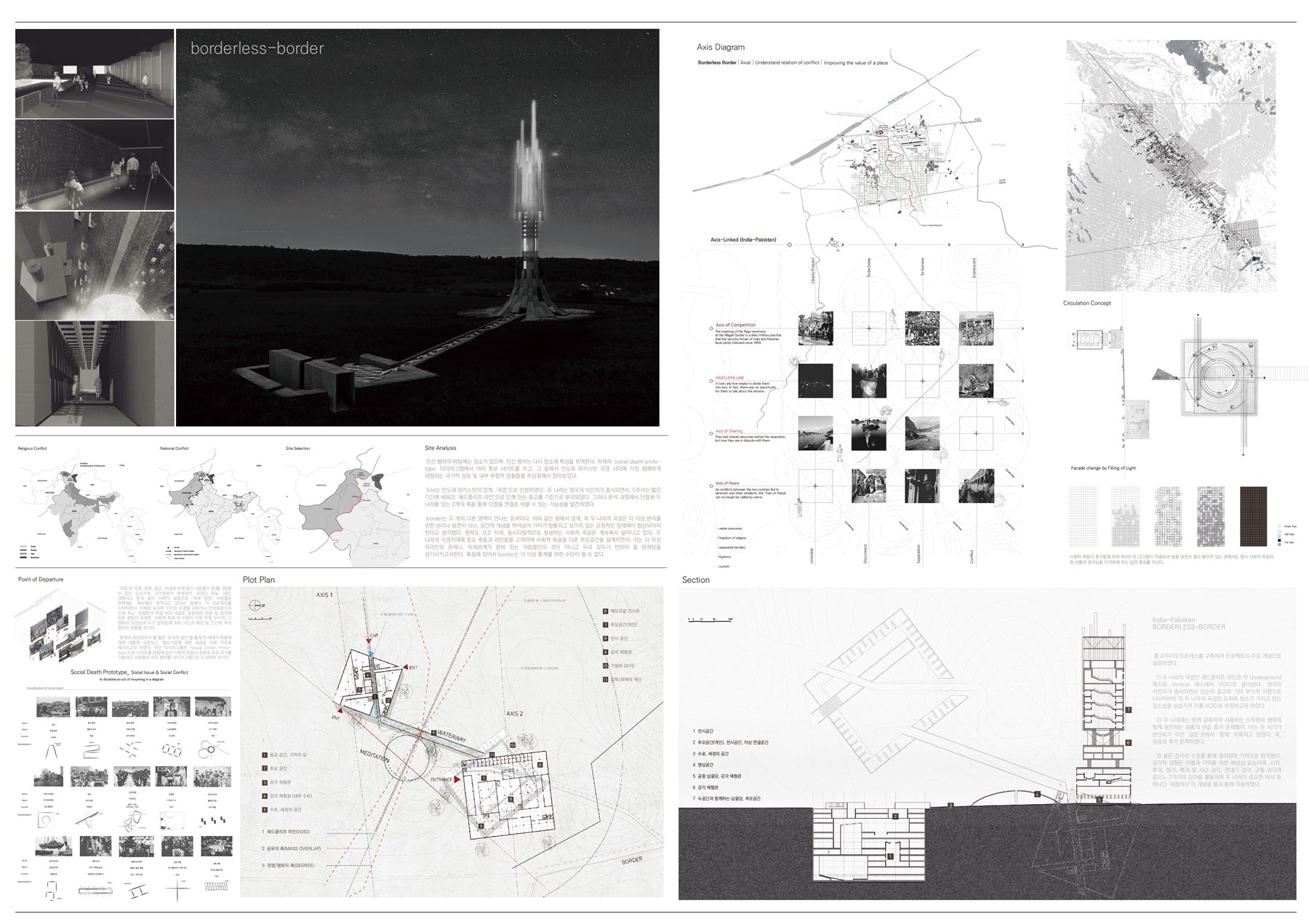 미래로 갈수록 인간은 수명을 다하거나 만성질환으로 인해 죽는 ‘생물학적 죽음’보다 새로운 사회적 갈등이 초래한 ‘사회적 죽음’에 대한 비중이 더욱 커질 것으로 예측된다. 사회적 죽음을 다룬 추모 공간은 단순히 역사적, 정치적 갈등의 상징으로서 과거의 기억을 불러일으키는 것이 아니라, 우리가 살아가고 있는 지금도 법과, 제도의 미완비와 불확실성, 그리고 이해관계의 충돌과 갈등을 통해 끊임없이 증폭되고 있다. 본 작품은 인도와 파키스탄의 경계, ‘국경’인근을 대지로 선정하고, 두 나라가 영국의 식민지가 종식되면서 종교를 기준으로 분리된 ‘래드클리프 라인’ 등 두 개의 축을 중심으로 전체 설계를 풀어나간 점이 흥미롭다. 또한 두 나라의 중요한 의식 중 하나인 ‘세정의식’의 개념을 물과 함께 설계에 적용하여 공간의 내러티브를 풍부하게 끌어가고 있는 점도 여기에서는 아주 적절해 보인다. 본 작업이 세상에 주는 메시지는 이 추모의 공간을 통해 앞으로도 무수히 진행될 사회적 죽음에 경종을 울리는 작은 계기를 만들려는 시도라는 점이다. 이 작은 노력에 갈채를 보낸다.