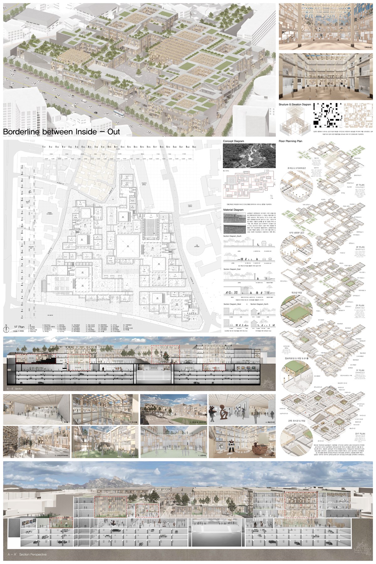 벽으로 막혀있던 송현동은 수평 벽을 수직으로 바꾸어 내부, 외부공간이 연계된 공간으로 쓰이고 일부분은 외부공간으로 두어 시민들이 편하게 사용할 수 있도록 한다. 새로운 송현길은 한국 문화를 알리는 체험 공간이 배치되어 있어 장소성을 나타낸다. 길로 인해 4개로 분절된 매스는 모든 입구에서 성큰 중정 및 목조를 통해 한국 공간 특성의 첫인상을 보여준다. 중정을 통해 엮인 실들은 내부와 외부의 경계선상에 있어 한국 공간의 특성을 반복해서 보여준다.