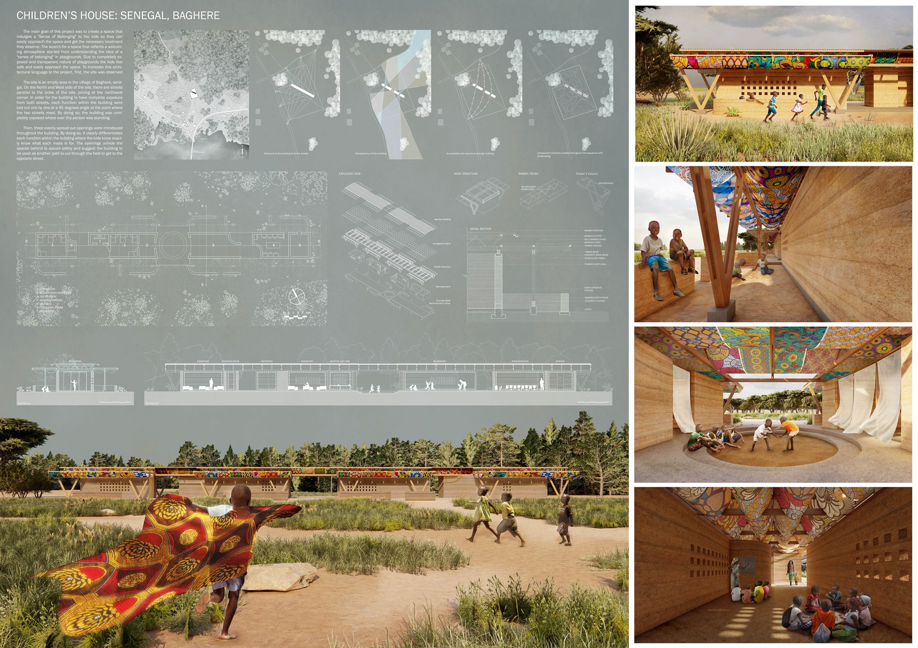 지역의 가장 기초적인 시설임에도 불구하고 이주한 학생의 작품은 세네갈의 문화적 정체성을 담고 주변 자연과의 지속적인 소통을 시도한다. 대지에 사선으로 놓인 매스는 모든 방향에서 아이들의 자유로운 접근을, 치료와 놀이 공간들의 엇갈린 배치는 사회적 시설과 아이들의 일상의 조화로운 만남을 유도한다. 건축물 곳곳에 차양 장치로 사용된 전통 원단과 점토 벽돌, 목제 등은 사용자에게 건축물 자연과의 강한 유대감과 장소성을 상기시킬 수 있는 장치이다.