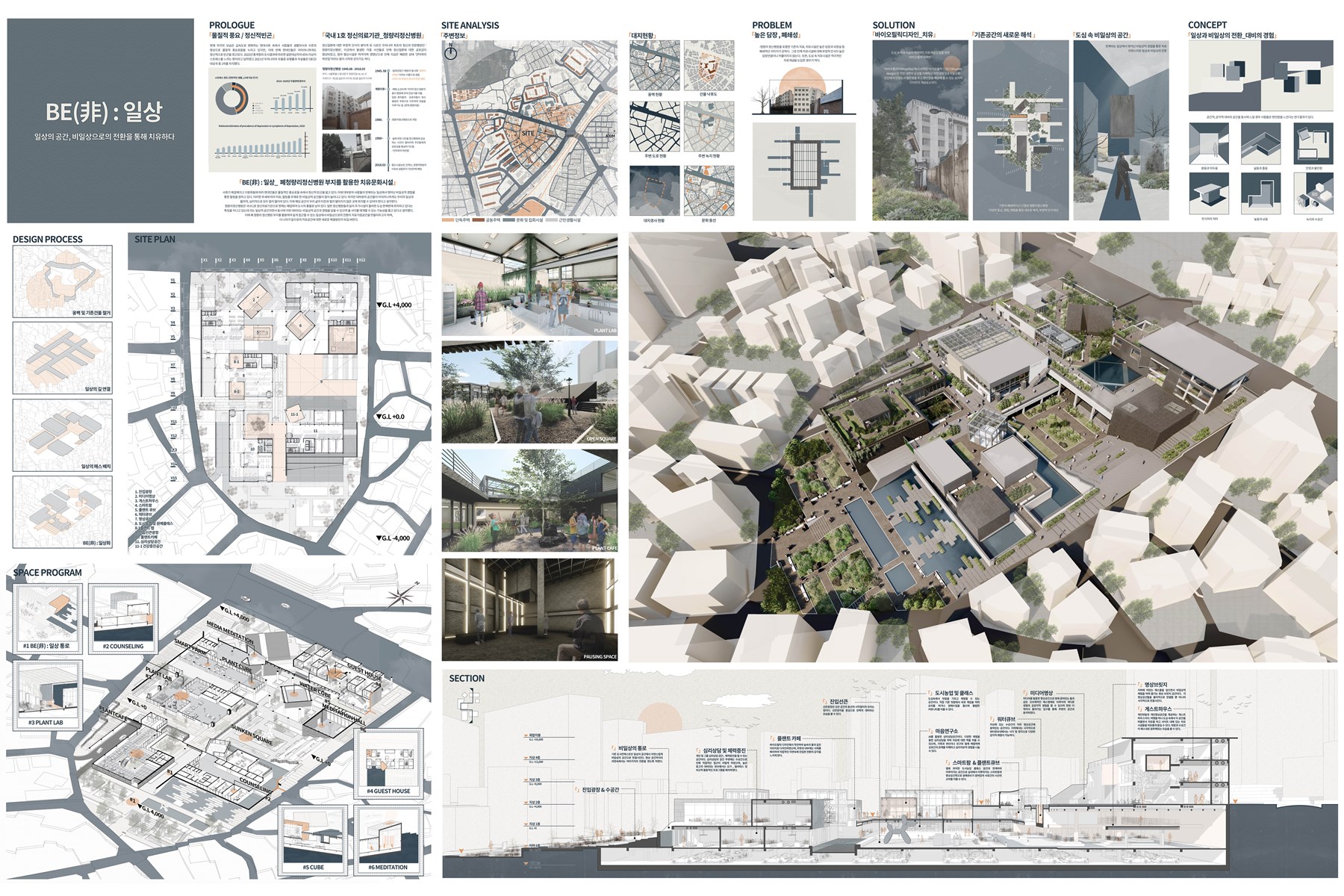 도시의 흉물로 크게 작용하였던 사이트 내의 높은 옹벽과 청량리 정신병원을 포함한 주변의 낙후되고 비어있는 건물을 철거하고, 끊겼던 기존의 길을 연결하였으며, 모든 레벨에서 진입이 가능하도록 하였다. 연결된 길들을 기준으로 매스를 배치하였고 자연스러운 대비의 경험을 적용시켜 비일상화를 이루었다.
