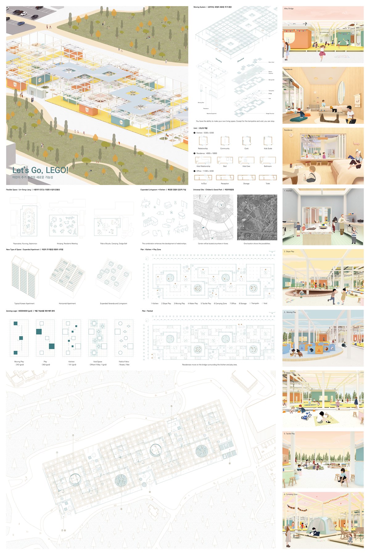 새로운 타입의 어린이 주거 환경은 기존 아파트의 확장에서 시작한다. 어릴 적, 타일 바닥으로 된 베란다에서 호스를 연결해 물놀이를 했던 반면에 최근, 베란다를 넓은 실내 공간으로 확장하여 집중 이용되는 추세이다. 그 결과, 현대의 주거 환경에서는 어린이들이 다양하게 놀 수 있는 공간이 줄어들고 있다. 더욱이 개인주의가 심해지는 사회에서 거주지 내 거실의 쓰임은 한정적이다. 흔한 한국의 아파트 거실 환경은 단순히 TV를 시청하는 목적 외에 다양한 움직임을 발견하기 어렵다. 기존 아파트의 수직적인 형태를 수평적으로 전환하여 확장을 통해 사람들 간의 접점이 많아지도록 공간을 넓히고자 한다.