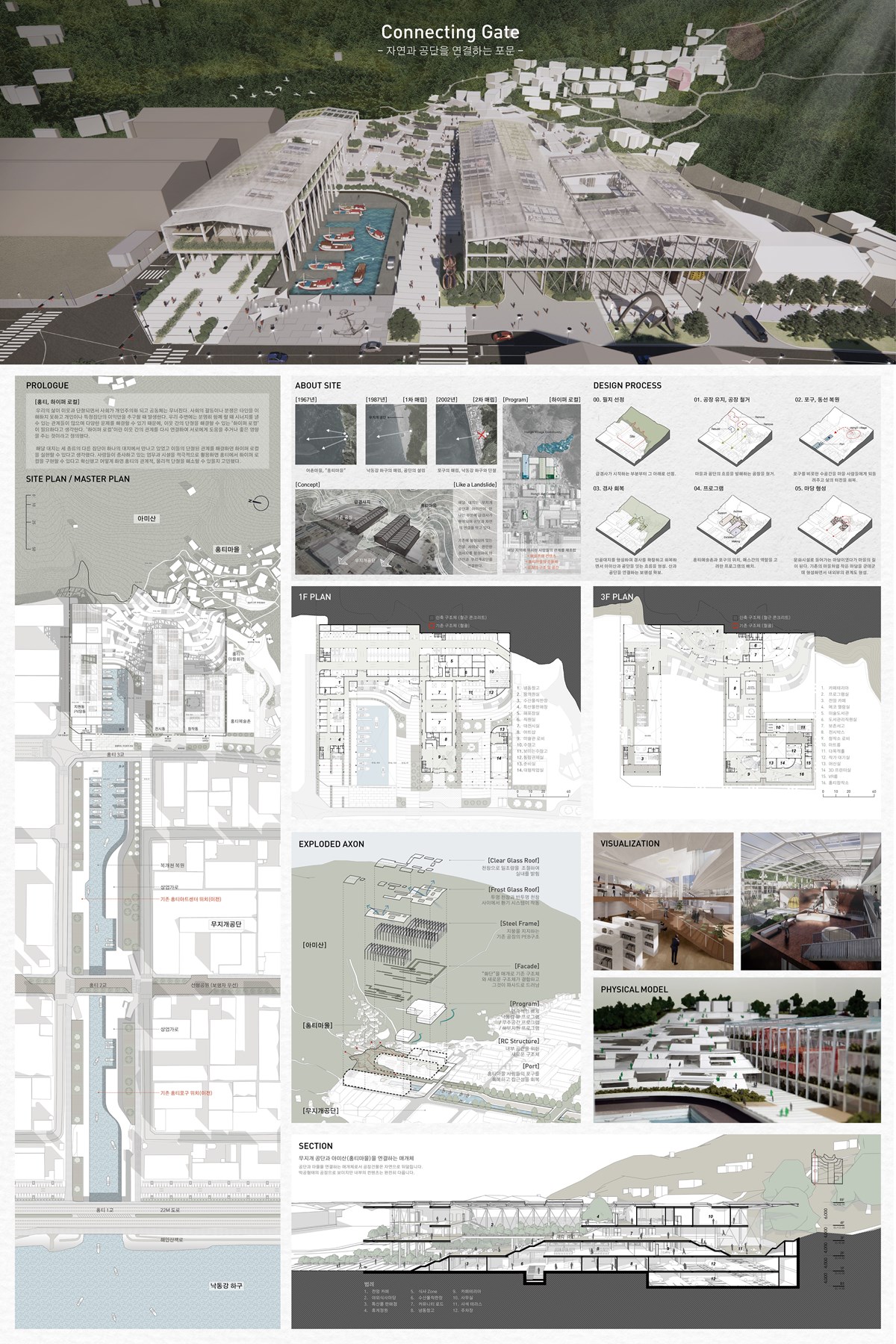 ‘Connecting Gate-자연과 공단을 연결하는 포문’의 제목에서 보여지듯이 이 작품은 바다를 삶의 터전으로 살아온 한 마을이 매립지로 인해 단절된 관계를 다시 연결함과 동시에 다양한 시대의 시간과 변화를 이어가는 방법에 대한 제안이다.