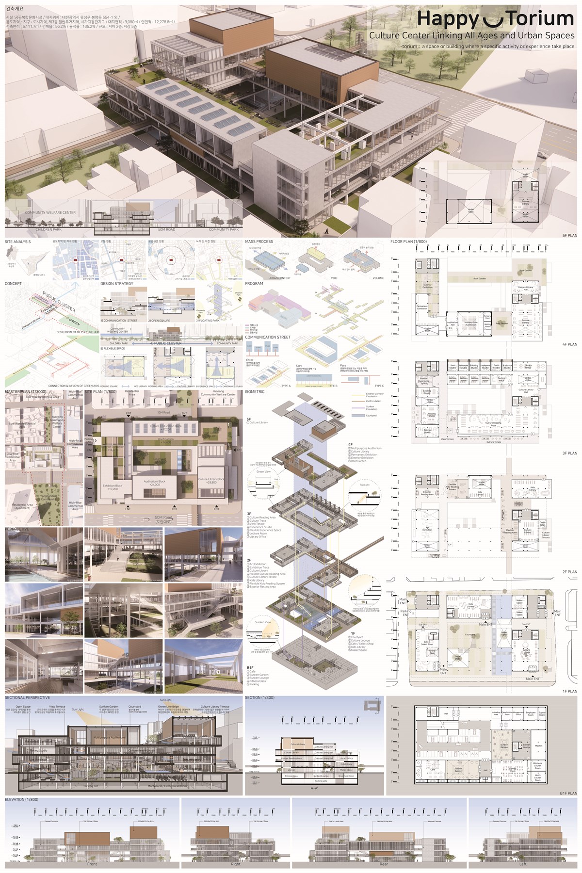 성지호의 Happy Torium은 지역주민들을 위한 복합문화공간 계획안으로 여러 가지 덕목들을 가지고 있지만 다음 두 가지 계획특성에 주목한다.