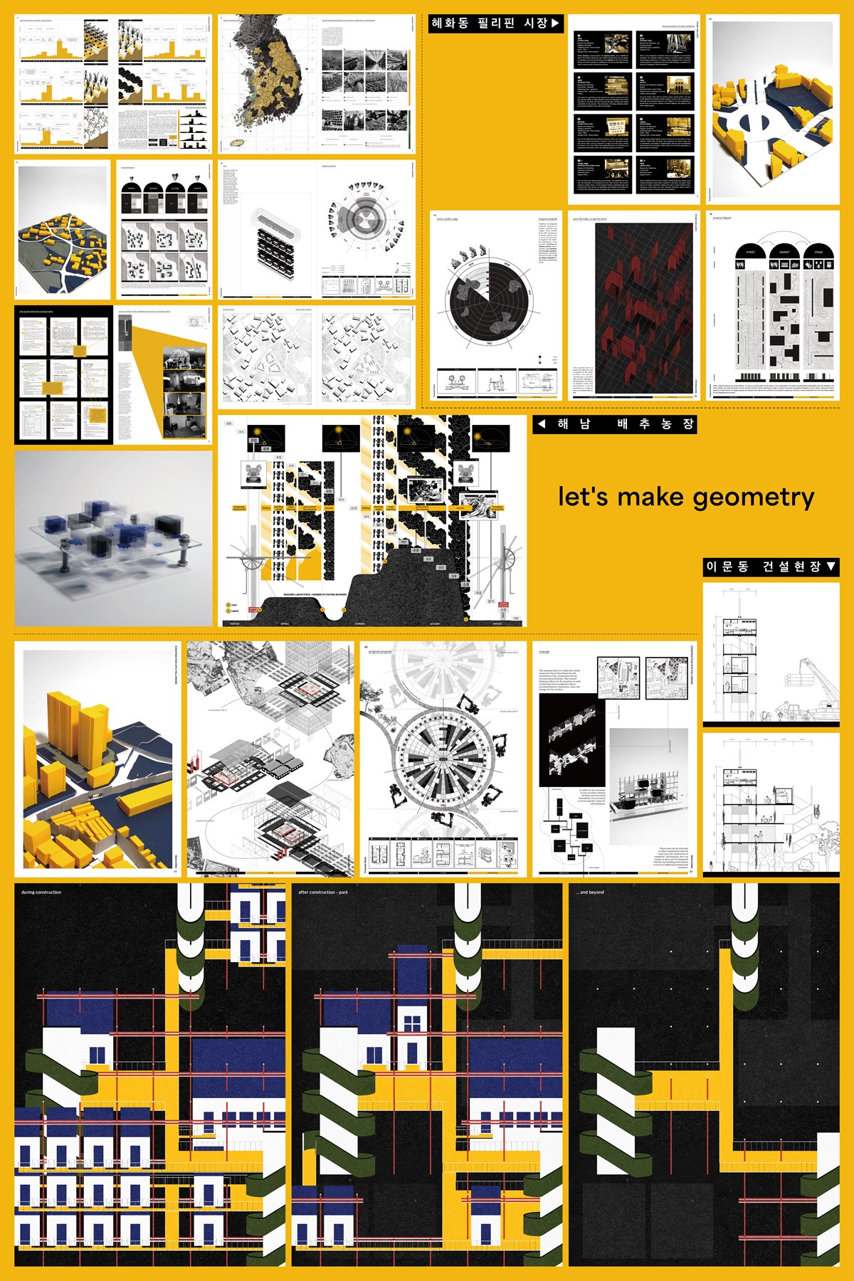 이문동에는 현재 서울 동대문구에서 진행 중인 재정비 사업 구역 중 가장 큰 규모를 가진 아파트 단지 공사가 진행 중입니다. 대상부지는 공사 현장의 가장 큰 출입구가 위치한 곳으로, 방음벽 내부 쪽 공사장에는 공사장 인부들을 위한 각종 편의시설과 현장 사무실로 운영 중인 임시 건축물들이 있으며, 방음벽 바깥쪽은 기존 아파트 단지와 빌라들, 작은 공원, 그리고 대학교의 후문과 닿아있습니다. 해당 임시 건축물들은 공사의 가장 마지막 단계까지 있어야 하므로 그 위치는 대체로 공사가 끝난 후에 주차장으로 쓰이거나 공원 등으로 사용을 계획 중인 구역으로 정해집니다. 이문동 현장에서도 마찬가지로 공사가 끝난 후 공원으로 바뀌어 기증이 예정된 구역에 임시 건축물들이 자리 잡고 있습니다.